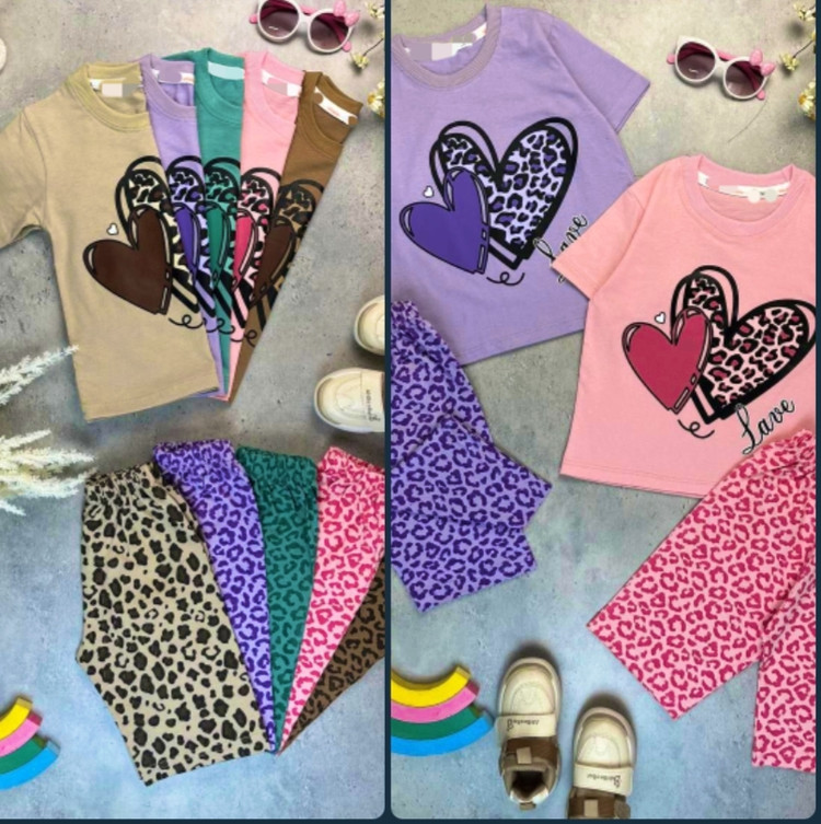 تیشرت شلوار دخترانه (قلب پلنگی)