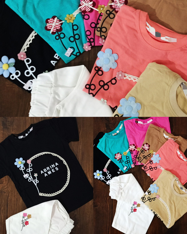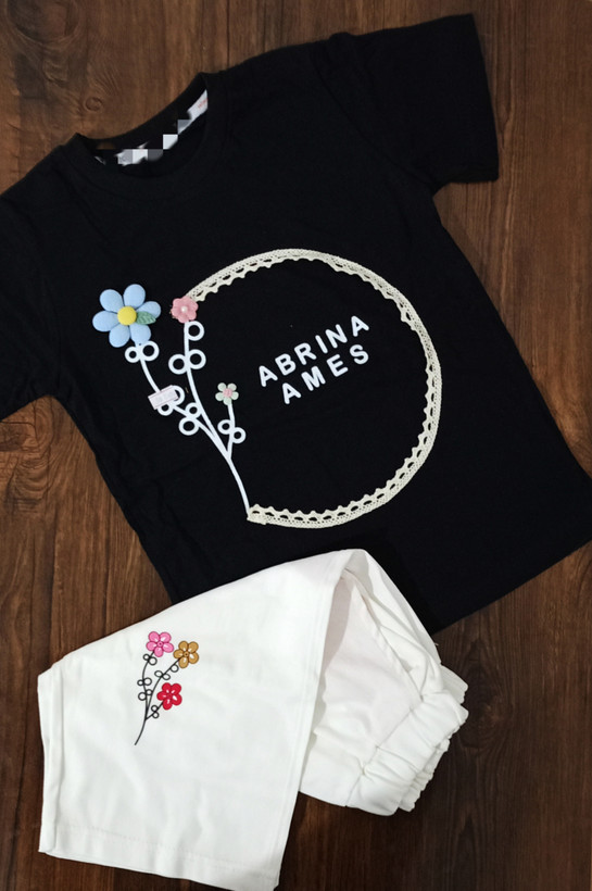 💗ست تیشرت شلوار دخترانه طرح گل برجسته.💗