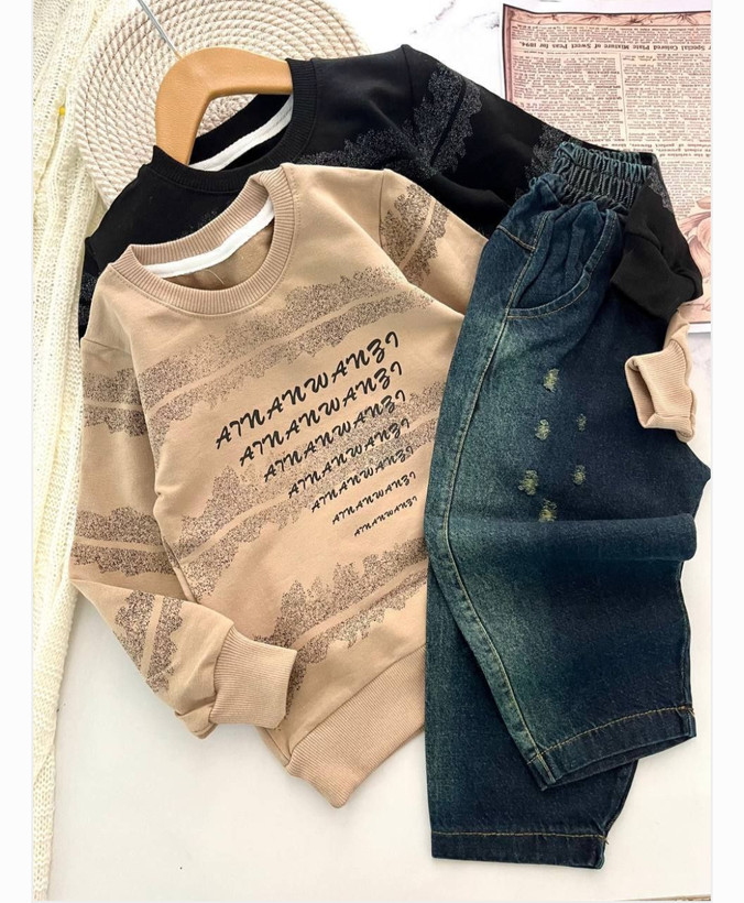 ست بلوز دورس و شلوار جین بچگانه گرم بالا و با کیفیت😍